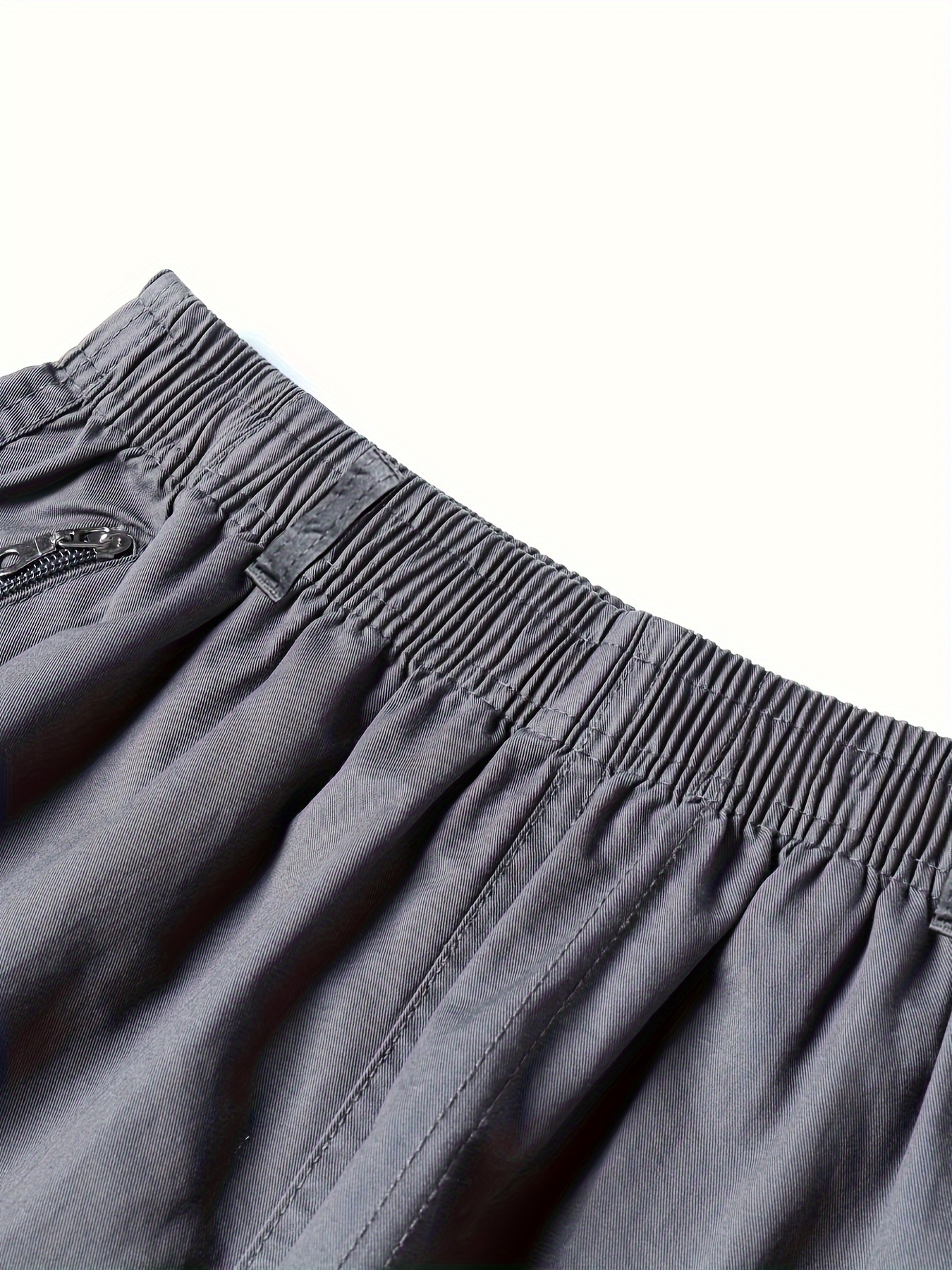 Casual Solid Men's Regular Fit Elastic Waist Cotton Cargo Shorts With Side Pockets For Summer Outdoor Leisure And Work