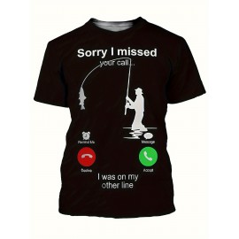 Eye-Catching Line Graphic Tee - Comfort Fit, Breathable Fabric for Summer Outings, Durable Crew Neck Men's T-Shirt