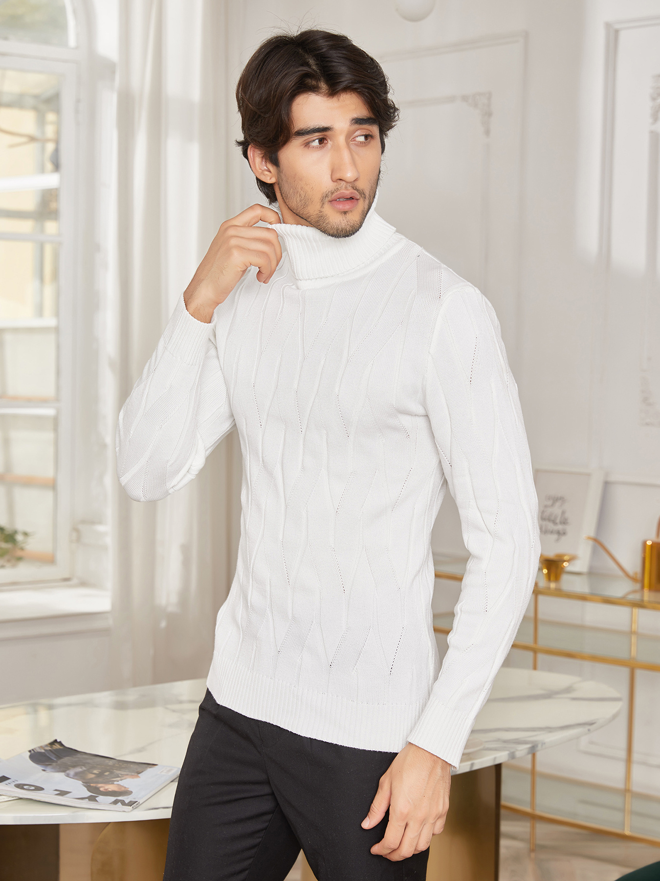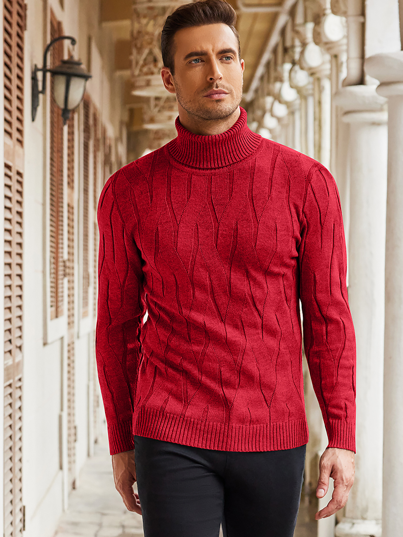 Men's Slim Fit Turtleneck Pullover - Casual Long Sleeve Knit Sweater, Machine Washable