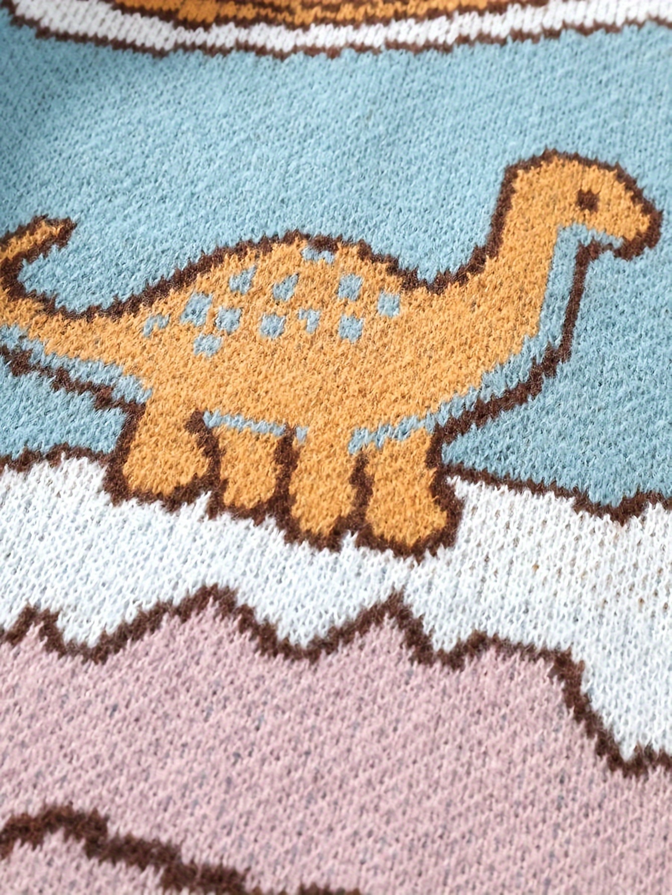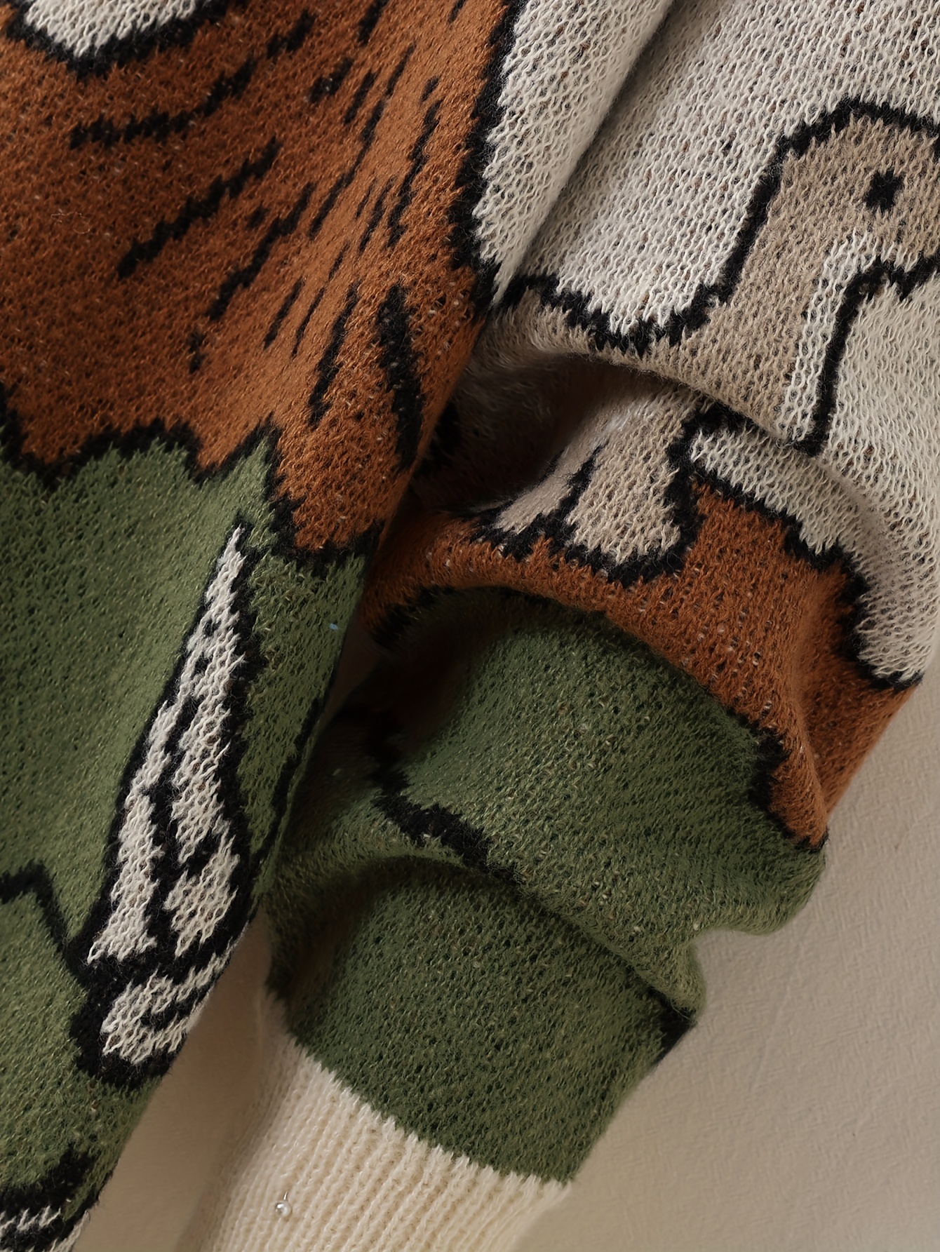1pc Men'S Casual Round Neck Pullover Sweater, Polyester Knit with Animal Pattern, Loose Fit Long Sleeve for Autumn/Winter