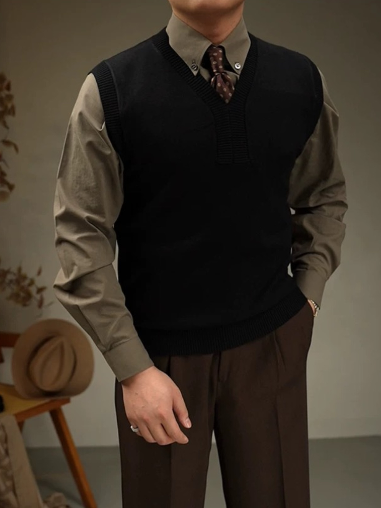 Men's Casual V-Neck Sweater Vest - Knit, Stretch Fabric, Perfect for Spring/Fall