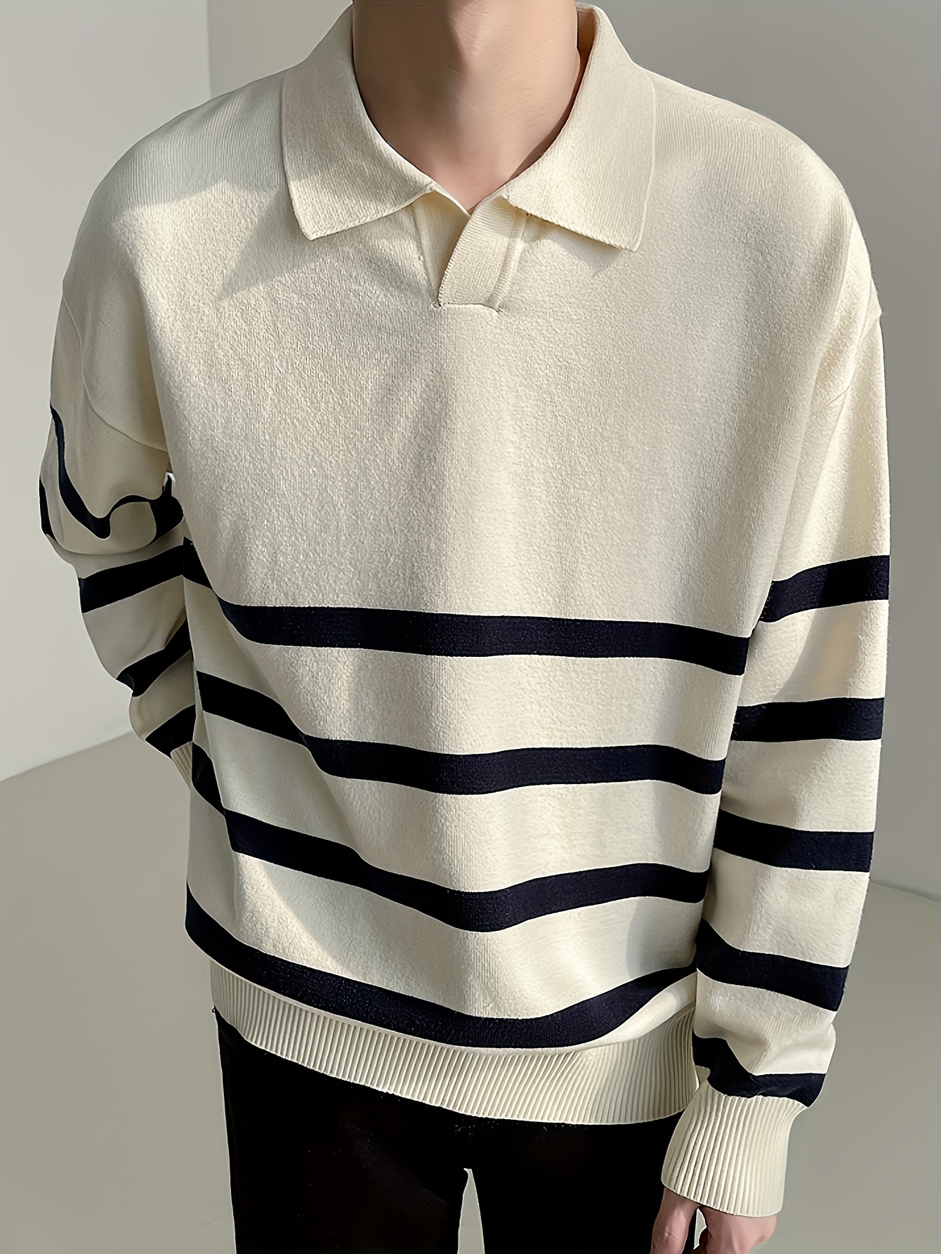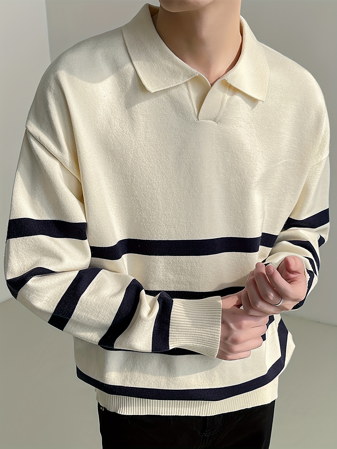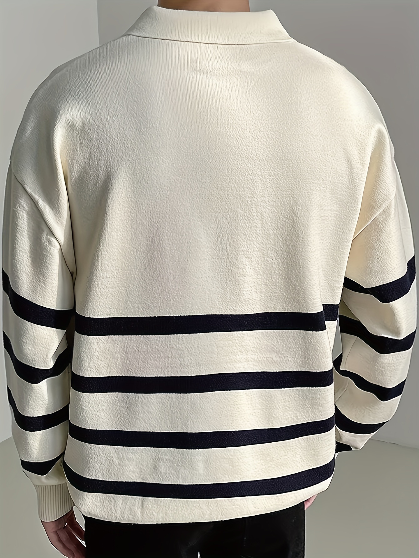 Men's Color Blocking Striped Golf Shirt For Autumn And Winter, Casual Stylish Long Sleeve Top As Gift