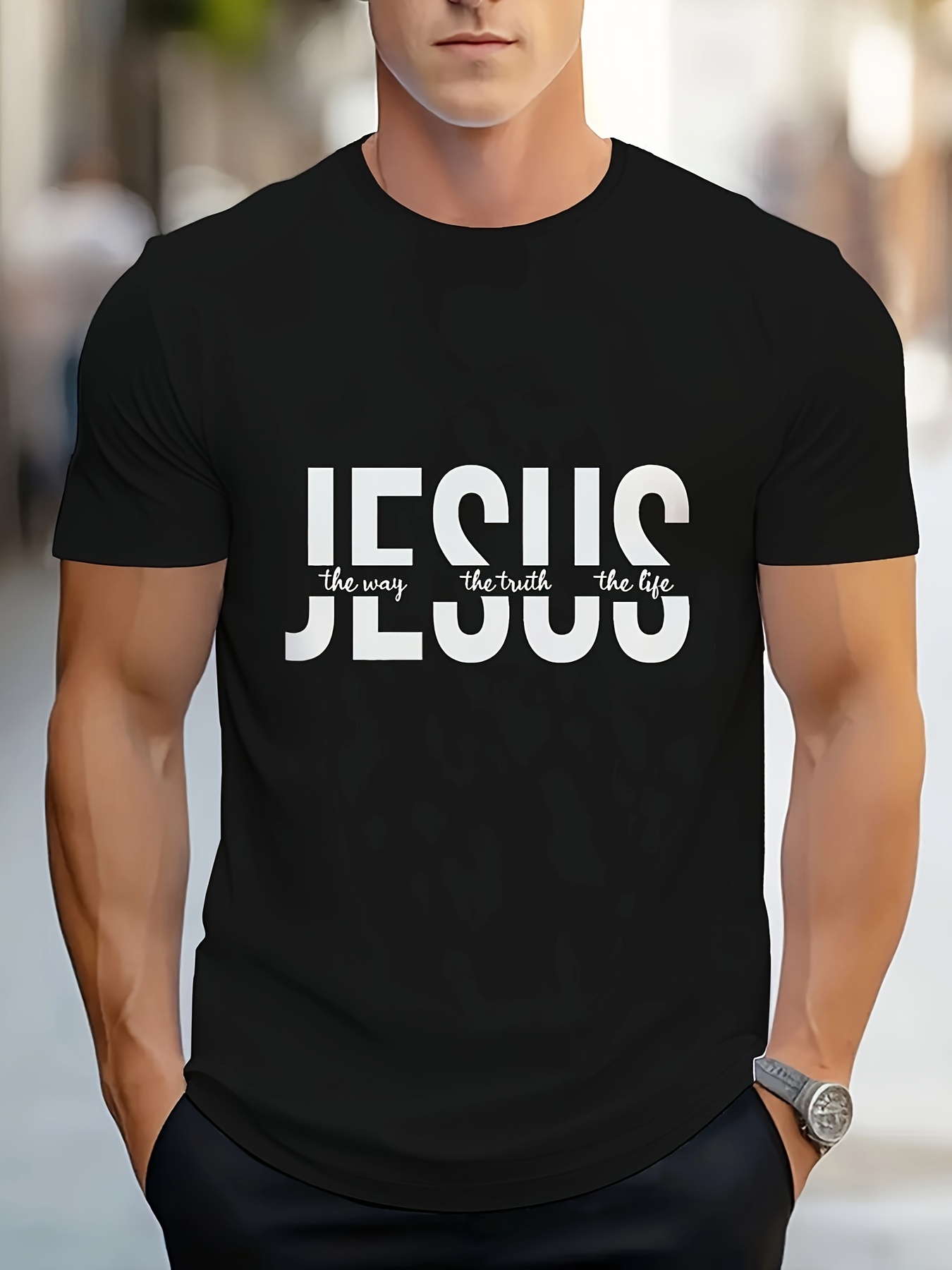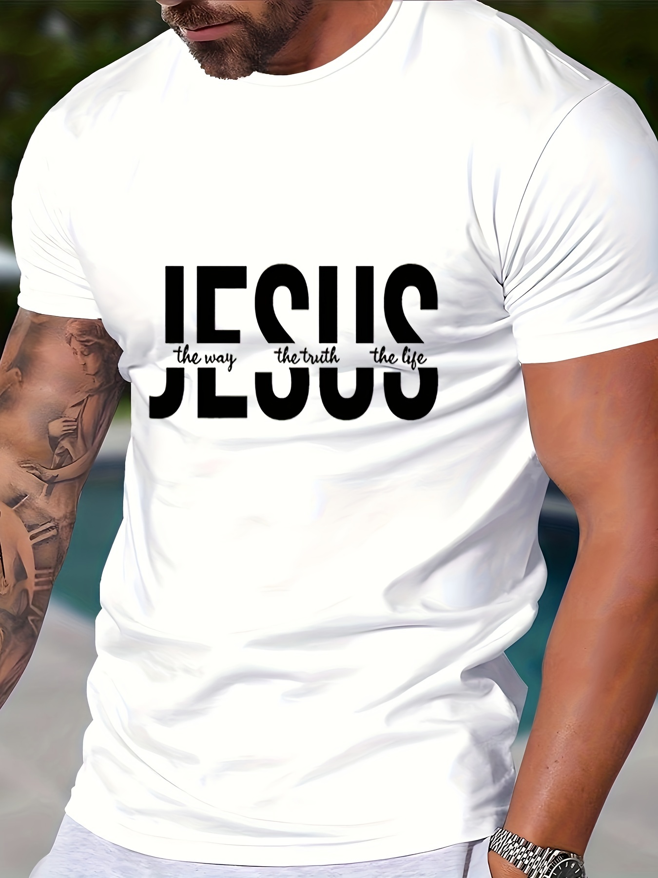 Men's Novelty Geometric Print T-Shirt - Casual Polyester Crew Neck Tee, Non-Transparent, Knit Fabric