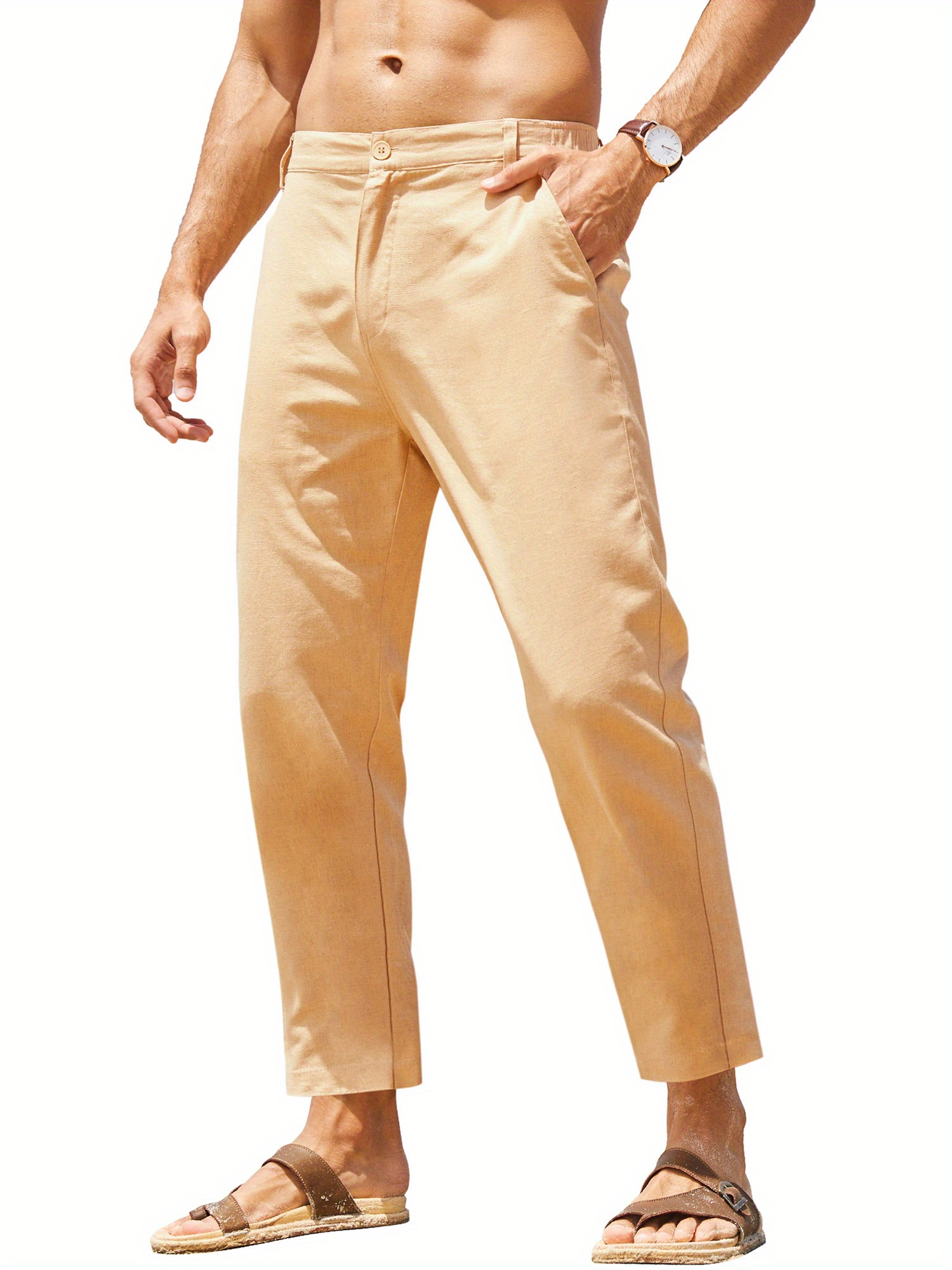 Men's Pants Slim Fit Yoga Beach Pants with Pockets Elastic Waist Lightweight Casual Pants