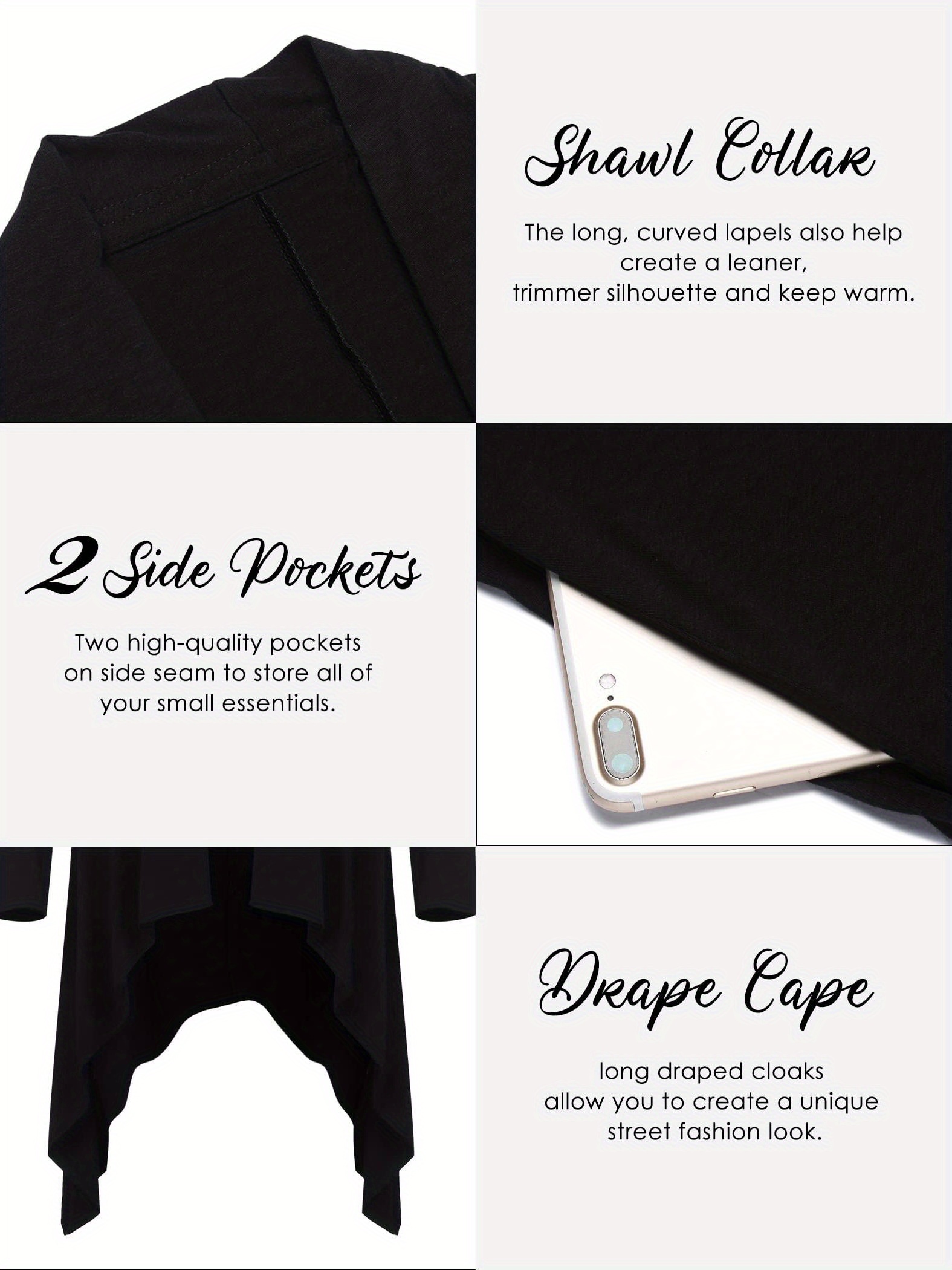 Men's Ruffle Shawl Collar Cardigan Long Sleeve Open Front Lightweight Long Length Drape Cape Overcoat with Pockets