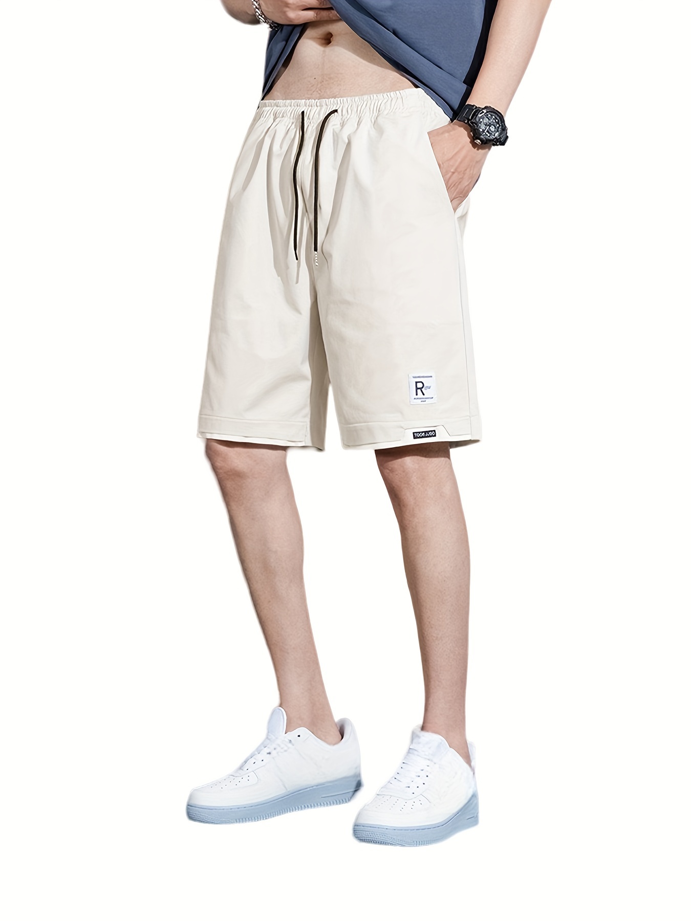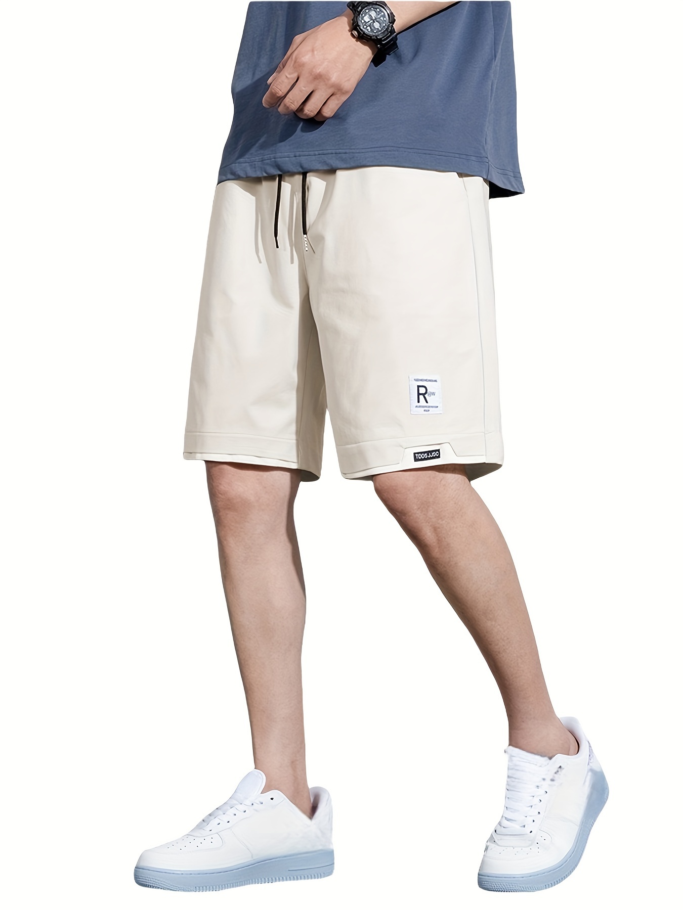 Men's Solid Color Sports Shorts With Drawstring & Pockets, Lightweight Comfy Shorts For Summer Sport And Casual Wear